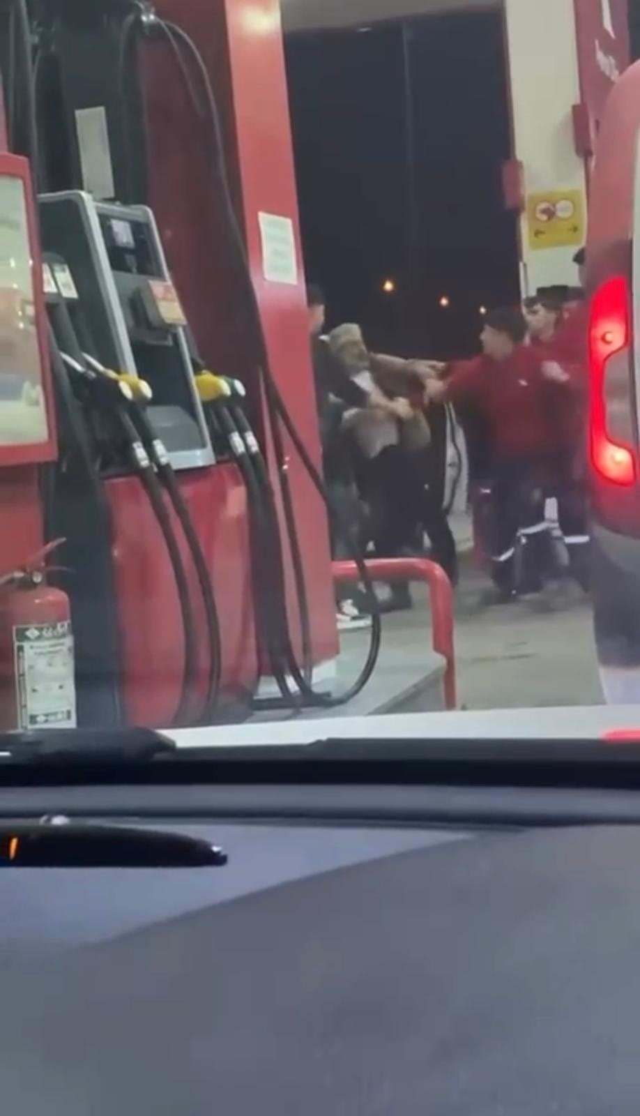 Bursa’nın Osmangazi ilçesi Mudanya Bulvarı’ndaki bir akaryakıt istasyonunda, araç sahibi ile istasyonda çalışan görevli arasında nedeni henüz belirlenemeyen bir tartışma çıktı.